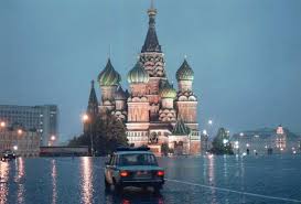 Το βράδυ της Δευτέρας μια καταρρακτώδης βροχή που έπεσε στη Μόσχα παράλληλα με το λιώσιμο του χιονιού μετέτρεψε αρκετούς δρόμους σε λίμνες.