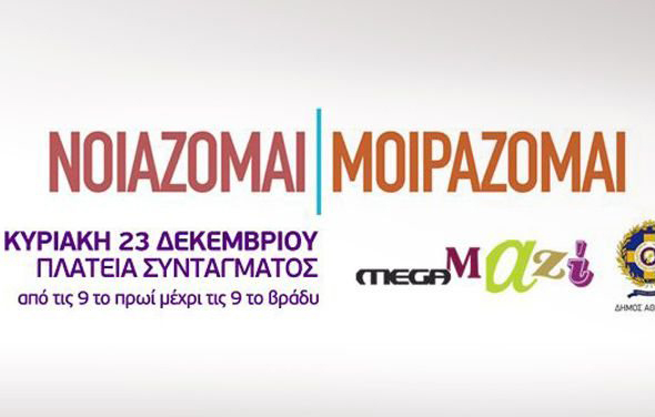 Μήνυμα ελπίδας έστειλαν παραμονές Χριστουγέννων χιλιάδες άνθρωποι, κάθε ηλικίας, που συρρέουν μαζικά από το πρωί και μέχρι αυτή την ώρα στο Σύνταγμα, ανταποκρινόμενοι στην πρωτοβουλία "Νοιάζομαι - Μοιράζομαι" του ΜEGA και του Κόμβου Αλληλοβοήθειας του Δήμου Αθηναίων.Με τα παιδιά να δίνουν το καλύτερο παράδειγμα, ο κόσμος συρρέει μαζικά και προσφέρει τρόφιμα, ρούχα, κουβέρτες, παιχνίδια, μικροσυσκευές και είδη προσωπικής υγιεινής, αλλά κυρίως ανθρωπιά προς όσους έχουν ανάγκη.