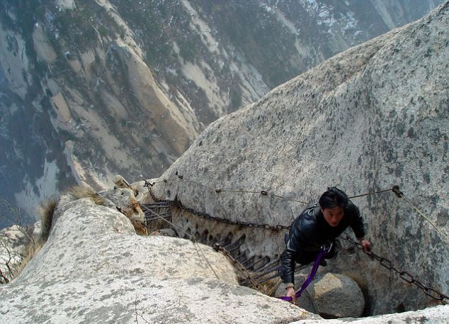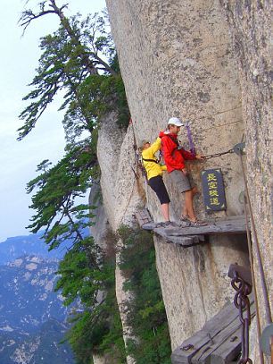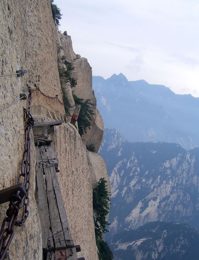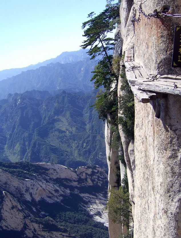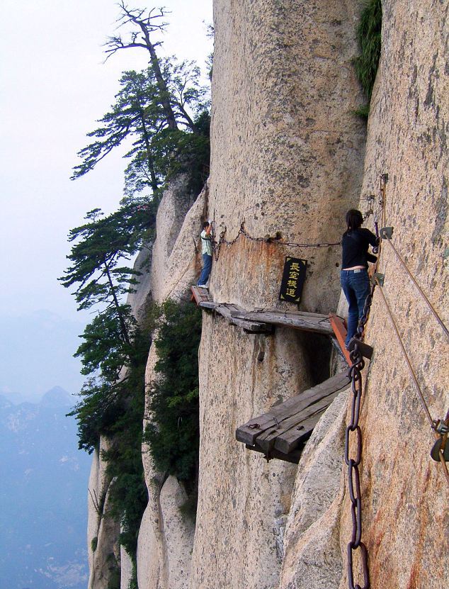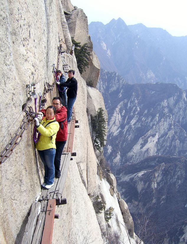 Και μόνο κοιτώντας αυτές τις φωτογραφίες νιώθεις το στομάχι σου να σφίγγεται.Παράτολμοι τουρίστες που λατρεύουν την περιπέτεια καταφθάνουν στο απόκρημνο όρος Haushan που βρίσκεται στην επαρχία Shaanxi της Κίνας για να περπατήσουν επάνω στις… σανίδες στο… τρομακτικό μονοπάτι Chang Kong.