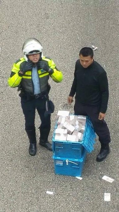 Αστυνομικοί, ορισμένοι οπλισμένοι, με κράνη και αλεξίσφαιρα γιλέκα, αναπτύχθηκαν στο σημείο για να αποκλείσουν την περιοχή.Συνολικά, περισσότερα από 15,23 εκατομμύρια δολάρια Χονγκ Κονγκ (1,96 εκατομμύρια δολάρια) σκορπίστηκαν στον δρόμο και στο πεζοδρόμιο, σύμφωνα με την αστυνομία.