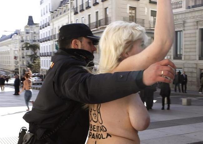 Την αντίθεσή τους στο νόμο που εισάγει περιορισμούς στις διαδηλώσεις και τις συναθροίσεις διαδήλωσαν δύο μέλη της οργάνωσης FEMEN οι οποίες εμφανίστηκαν γυμνόστηθες έξω από το ισπανικό κοινοβούλιο στη Μαδρίτη.
