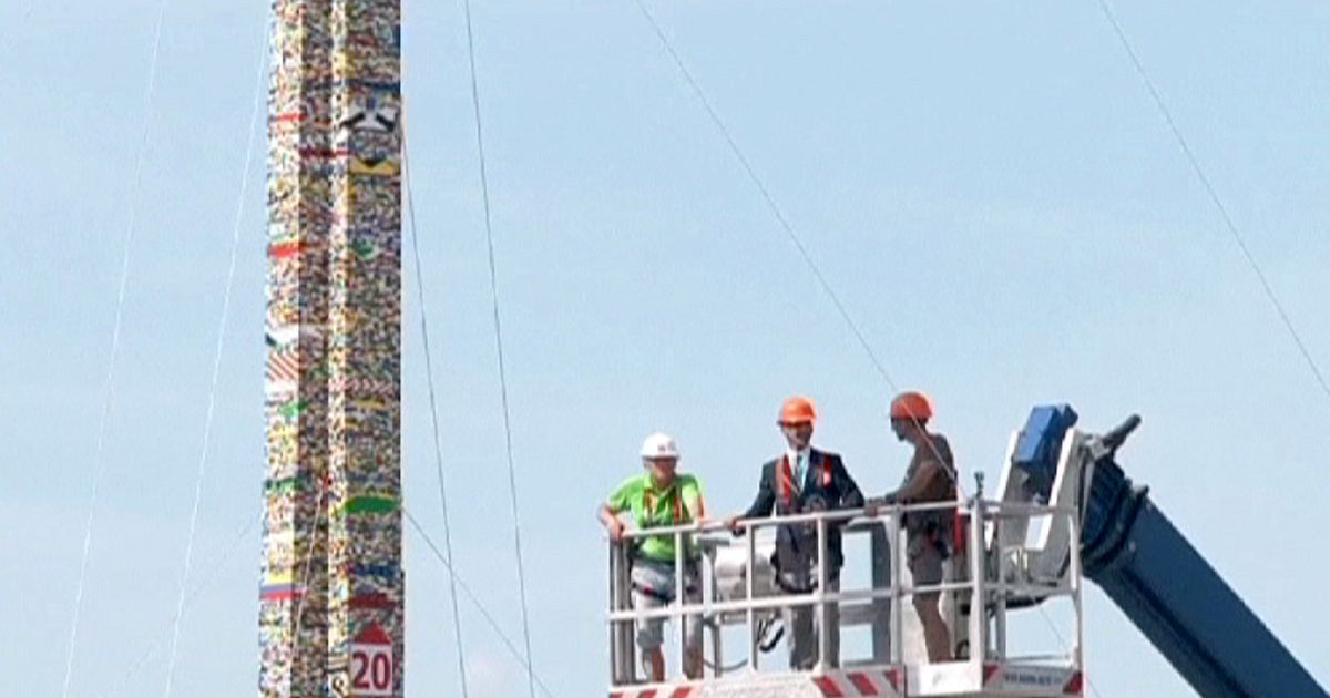 Περίπου 600.000 τουβλάκια χρειάστηκαν για τη δημιουργία του πύργου, ενώ εκατοντάδες παιδιά συνέβαλαν στην κατασκευή του.