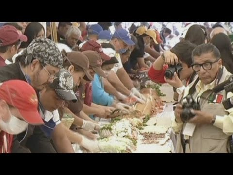 Δεκάδες σεφ έβαλαν τα δυνατά τους κατά τη διάρκεια της «12ης Έκθεσης Σάντουιτς» στην Πόλη του Μεξικού προκειμένου να δημιουργήσουν ένα σάντουιτς τεραστίων διαστάσεων, γεμάτο με παραδοσιακά υλικά.