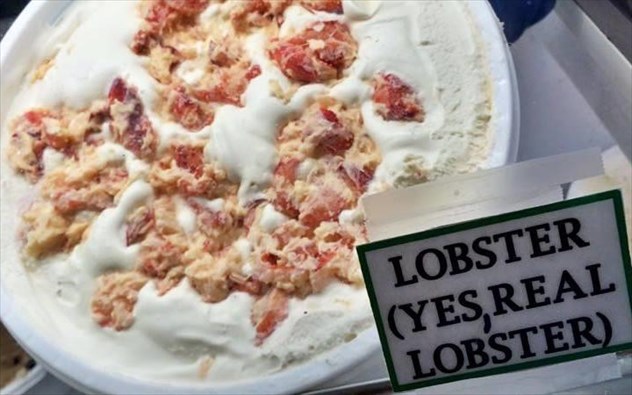 Παγωτό αστακόςΣτο Bar Harbor του Maine των Ηνωμένων Πολιτειών, το Ben & Bill’s Chocolate Emporium παίρνει τον αστακό από την αστακομακαρονάδα και τον χρησιμοποιεί στο πολύ διάσημο παγωτό του. Για την παρασκευή του χρησιμοποιεί βάση με παγωτό βουτύρου στο οποίο προσθέτει κομμάτια φρέσκου και βουτυρωμένου αστακού, έτσι ώστε η κάθε μπουκιά να είναι τραγανή. Και κάπως έτσι, ο αστακός παίρνει άλλη θέση στο τραπέζι.