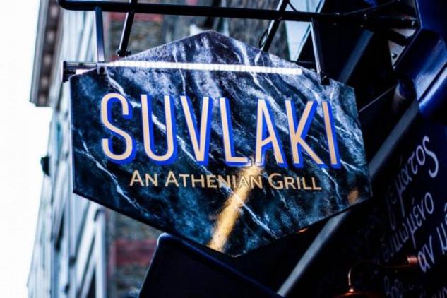 Και όμως, το νέο hot spot για το οποίο μιλάει όλο το Λονδίνο είναι το... Suvlaki, ένα μαγαζί με αυθεντικό ελληνικό σουβλάκι στο Σόχο που έχει μόνο ελληνικές υπογραφές!Η πρόσοψη του μαγαζιού με απόσπασμα από την Ιθάκη του Καβάφη ζωγραφισμένη στο χέρι.