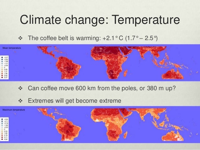 Ο καφές ποικιλίας "Arabica" ο οποίος χρησιμοποιείται από πάρα πολλά μαγαζιά, όπως τα Starbucks, βρίσκεται σε τεράστιο κίνδυνο από την αλλαγή των θερμοκρασιών, σύμφωνα με τον Illy. Η ποικιλία robusta, όπως αναφέρει και το όνομά της είναι πιο ανθεκτική. Η Βραζιλία είναι η μεγαλύτερη παραγωγός Arabica, ενώ το Βιετνάμ είναι η μεγαλύτερη παραγωγός robusta. H Ιlly χρησιμοποιεί μόνο Arabica.Ο Jean-Marc Duvoisin, CEO της Nespresso ανέφερε πως οι αγρότες κάνουν ήδη αλλαγές για να προσαρμοστούν στις αυξημένες θερμοκρασίες, ενώ ο ίδιος ανέφερε πως η αλλαγή του κλίματος έχει σίγουρα αρνητική επίδραση.