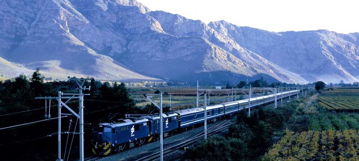 Το Blue Train περνάει μέσα από τις ανοιχτές εκτάσεις της Νότιας Αφρικής από την Πρετόρια στο Κέιπ Τάουν και αντίστροφα, παρέχοντας σουίτες με μπάνια και κρεβάτια σχεδιασμένα κατά παραγγελία. Οι επιβάτες μπορούν να απολαύσουν τα τοπία από τα οποία περνάει το τρένο μέσω οθονών, χαλαρωμένοι στη σουίτα τους.