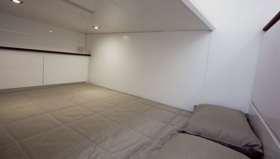 Η καμπίνα είναι διπλή και διαθέτει ντουλάπα, μπάνιο και τραπεζαρία ενώ το σκάφος έχει ταχύτητα 38 κόμβων.