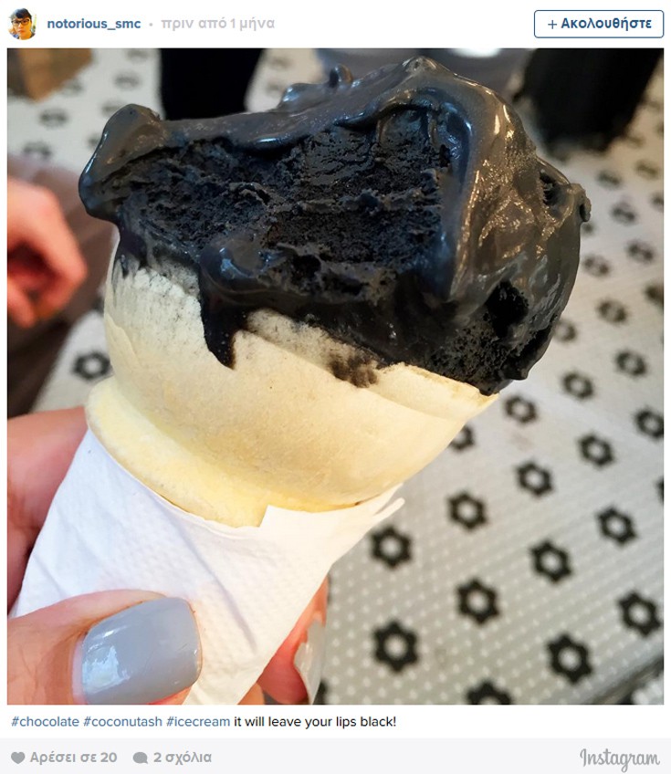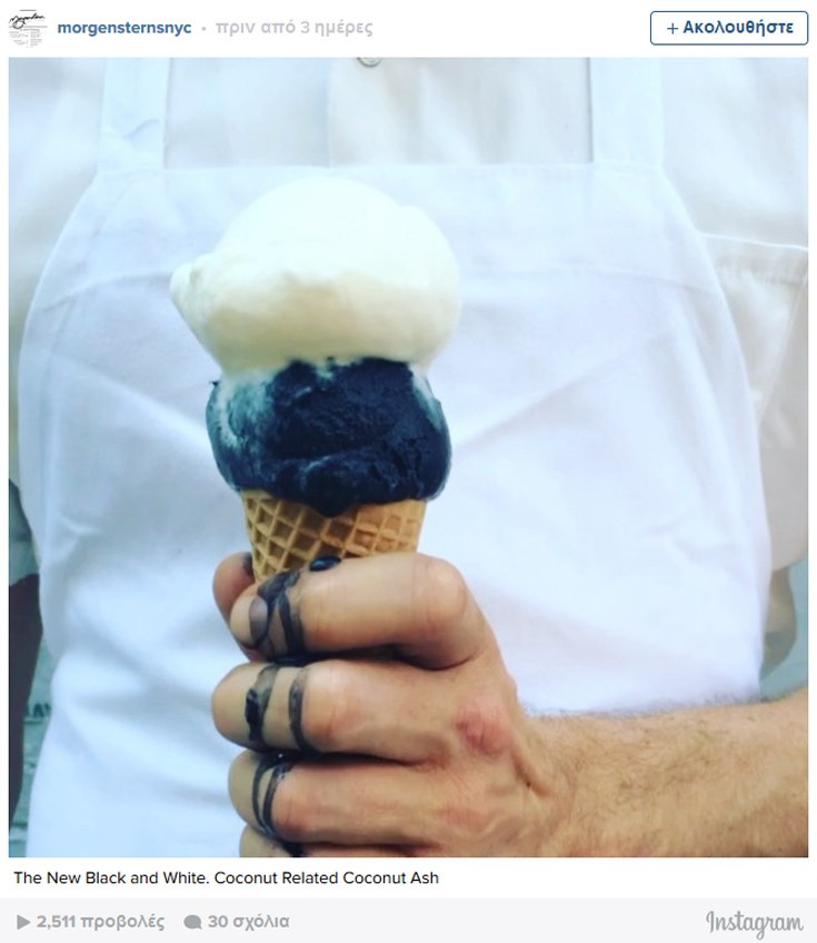 Η δημιουργία της τζελατερίας Morgenstern's παρουσίασε τη γεύση «Coconut Ash» η οποία λόγω του μαύρου χρώματος, κάνει την εμφάνισή της και στα social media. Πλήθος χρηστών του Instagram ζητούν την επίμαχη γεύση και κατόπιν ανεβάζουν φωτογραφίες με το κατάμαυρο παγωτό τους.