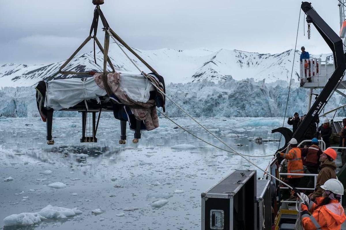 Το πιάνο μεταφέρθηκε με τη συνδρομή της Greenpeace και τοποθετήθηκε σε ένα τεχνητό, ξύλινο «παγόβουνο», μπροστά από τον παγετώνα Βάλενμπεργκριν, στο Αρχιπέλαγος Σβάλμπαρντ, στα μισά περίπου της απόστασης ανάμεσα στη Νορβηγία και τον Βόρειο Πόλο.Μέσω των πλήκτρων του, ο Εϊνάουντι απηύθυνε έκκληση για προστασία της Αρκτικής, της οποίας οι πάγοι λιώνουν λόγω της κλιματικής αλλαγής.
