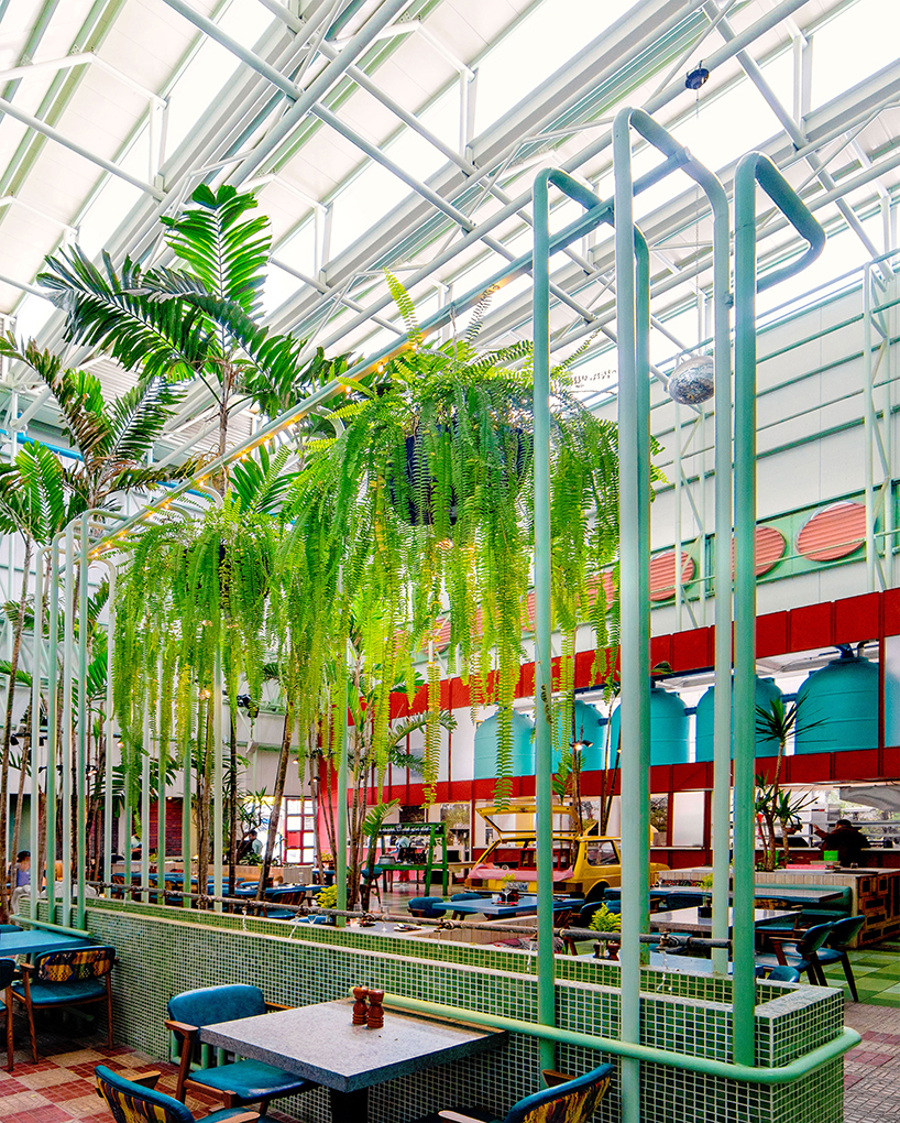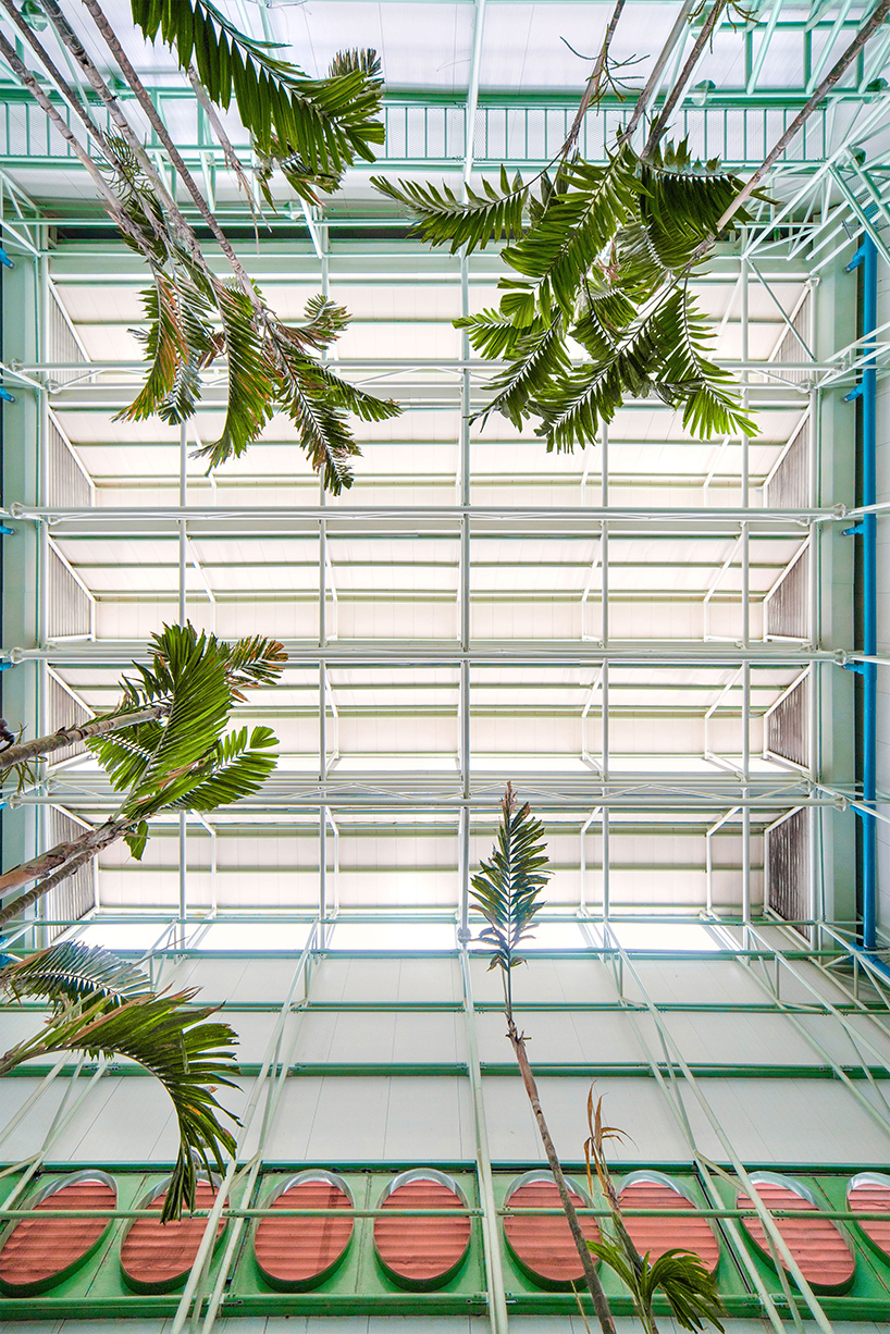 Στο «Madero café» με την οροφή του στα 15 μέτρα, τον χώρο να φωτίζεται από φεγγίτες και τα όμβρια ύδατα από τη στέγη να συλλέγονται σε μπλε δεξαμενές και να χρησιμοποιούνται για τη διατήρηση της τροπικής βλάστησης, προσφέρει έναν υπέροχο χώρο για φαγητό ή καφέ.