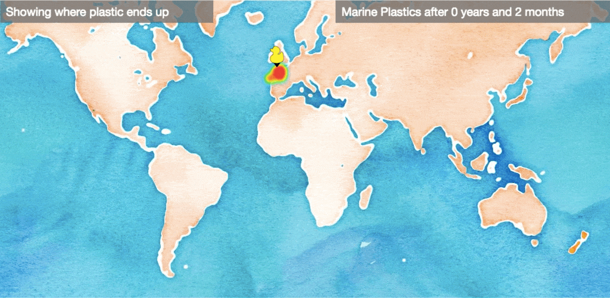 Κάτι ανάλογο συμβαίνει και αν η πορεία ξεκινήσει από τη Βρετανία. Τα κομμάτια πλαστικού αρχικά κατευθύνονται προς τη Σκανδιναβία αλλά στη συνέχεια το μεγαλύτερο τμήμα καταλήγει στον Βισκαϊκό κόλπο και στη Βόρεια Θάλασσα.
