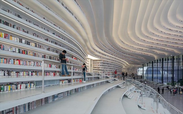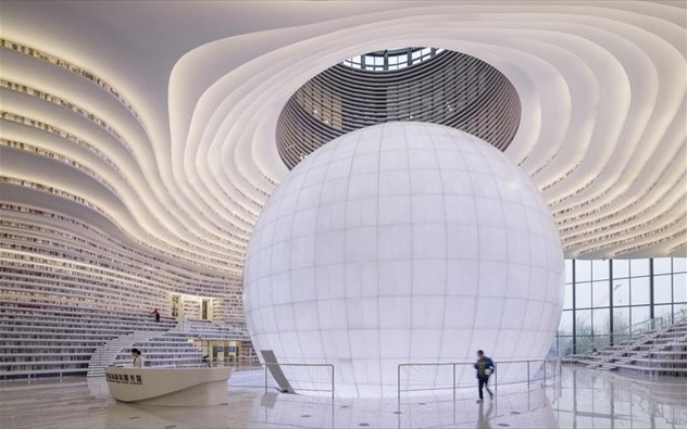 Η βιβλιοθήκη βρίσκεται κοντά στο Πεκίνο λέγεται Tianjn Binhai και αποτελεί μια νέα πρόταση για τις βιβλιοθήκες του μέλλοντος